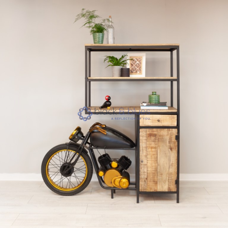 Fuel your love for entertaining with the Motor Cabinet. This motorcycle-inspired bar cabinet injects a touch of vintage flair into your space, ideal for creating a conversation-starting drinks station for casual gatherings or showcasing your prized whiskeys.