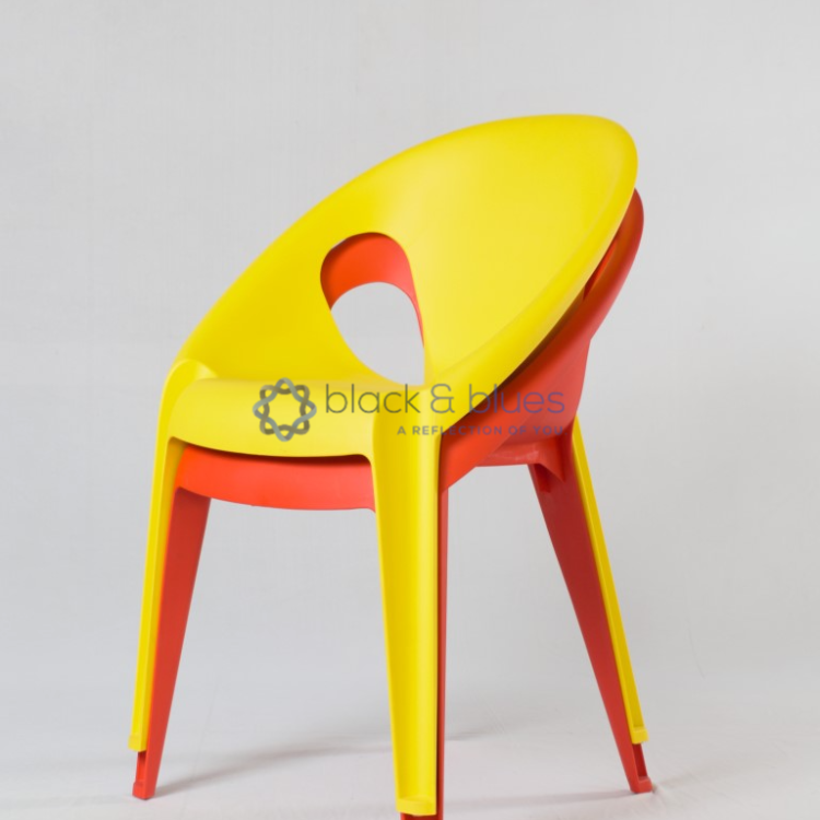 Milkyway cafe chair's celestial charm, with its curved back and shimmering chrome, invites conversation and a touch of wonder.