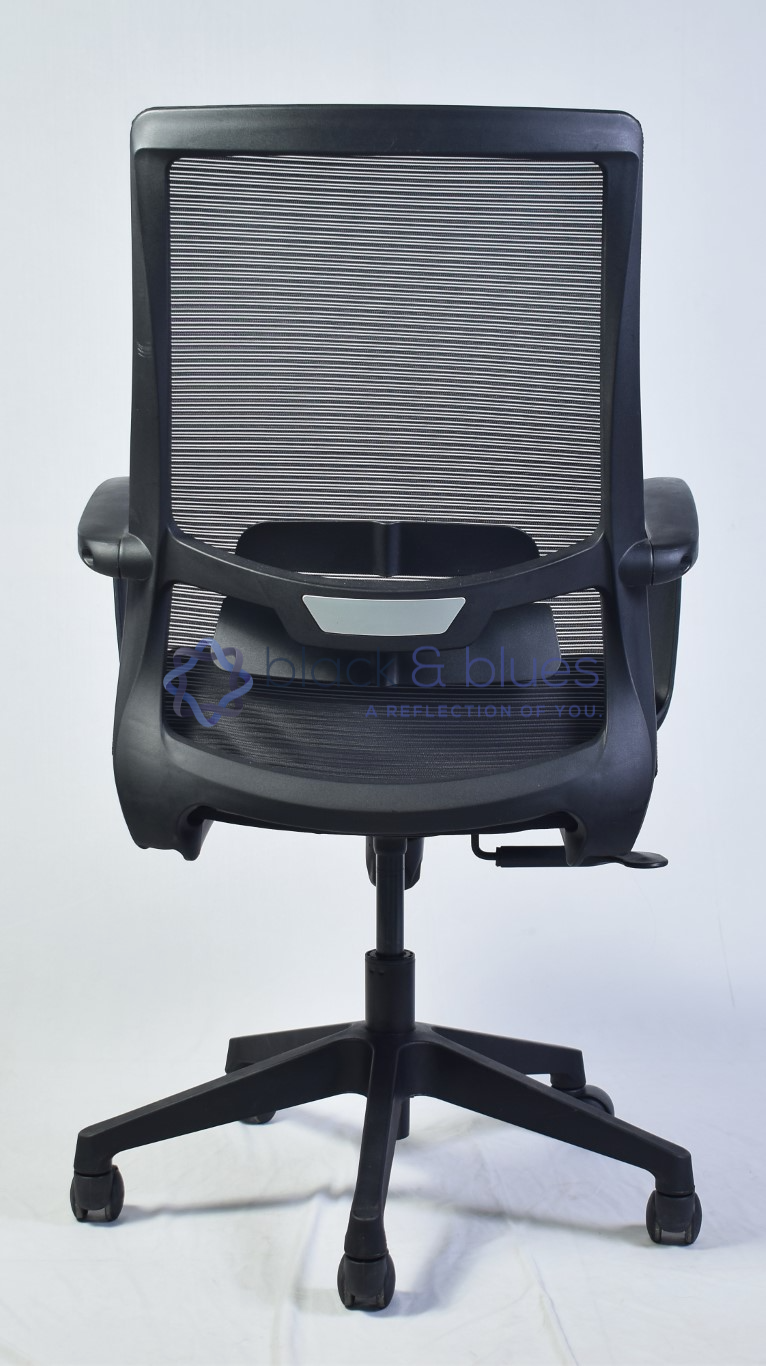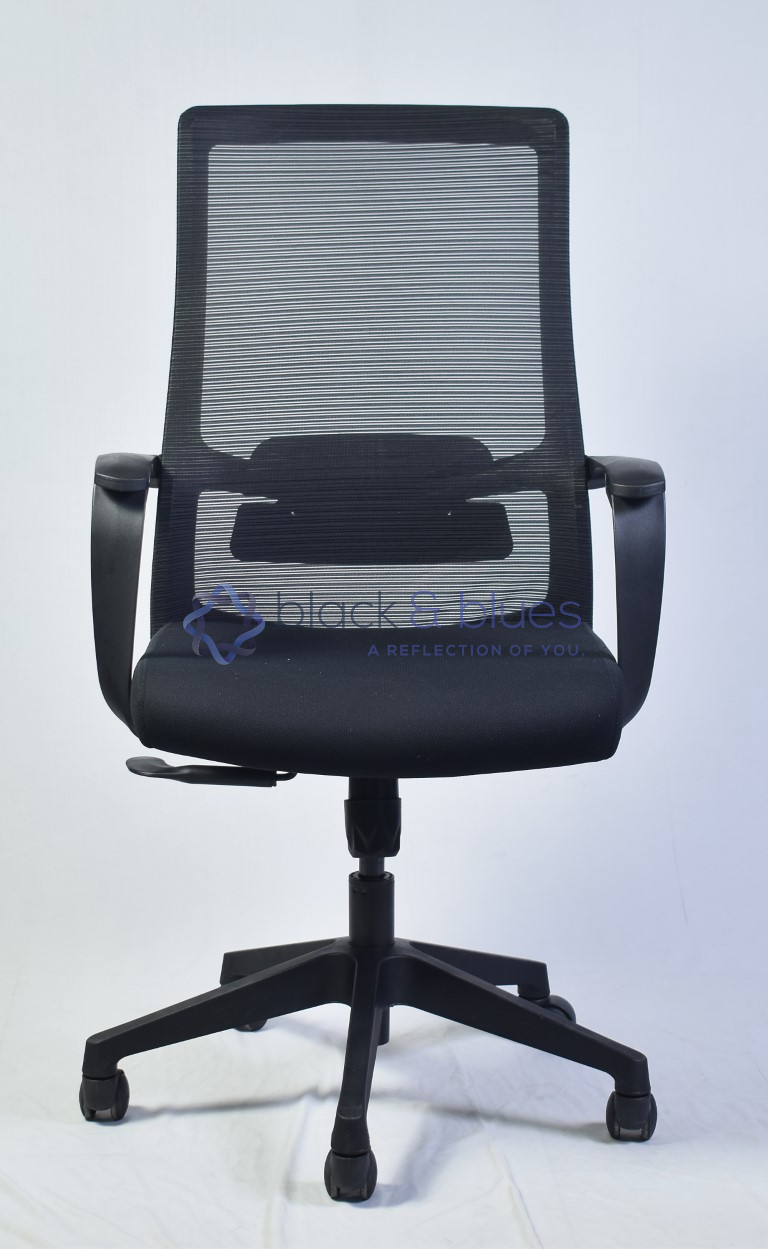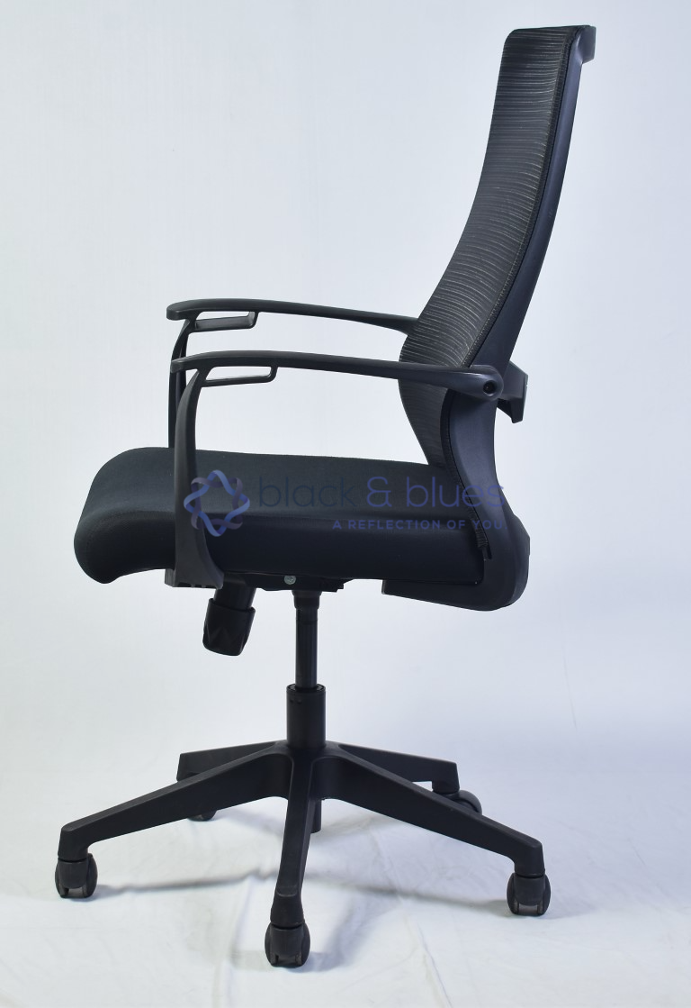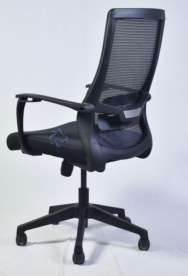 The Edge mesh chair in black blends cutting-edge mesh technology with a supportive ergonomic backrest. This sleek combination keeps you cool, promotes healthy posture, and reduces fatigue during extended work sessions.