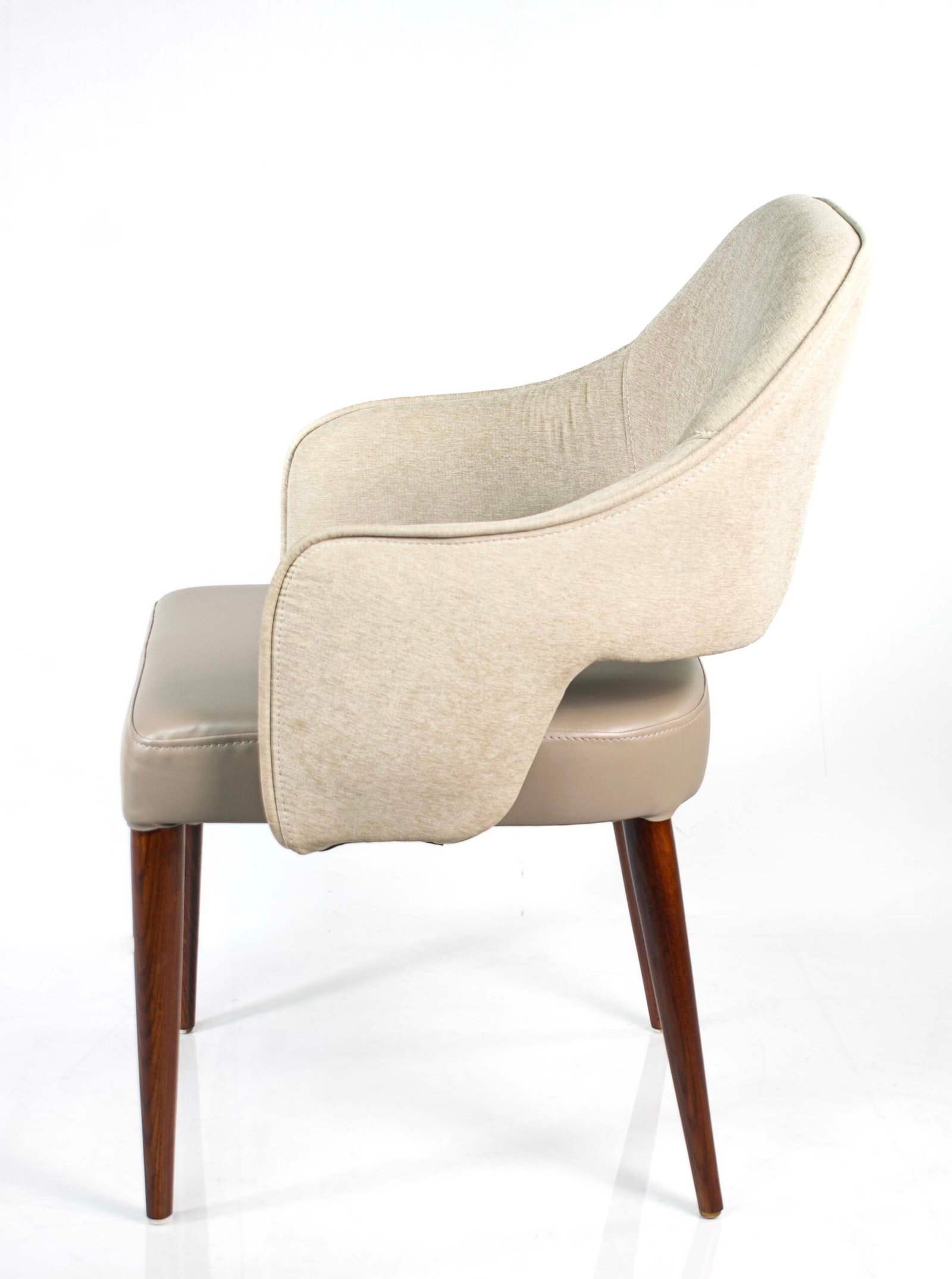 1. WOODEN LEGS 2. MOULDED PLYWOOD STRUCTURE 3. HIGH DENSITY CUSHION 4. FABRIC AS PER CHOICE