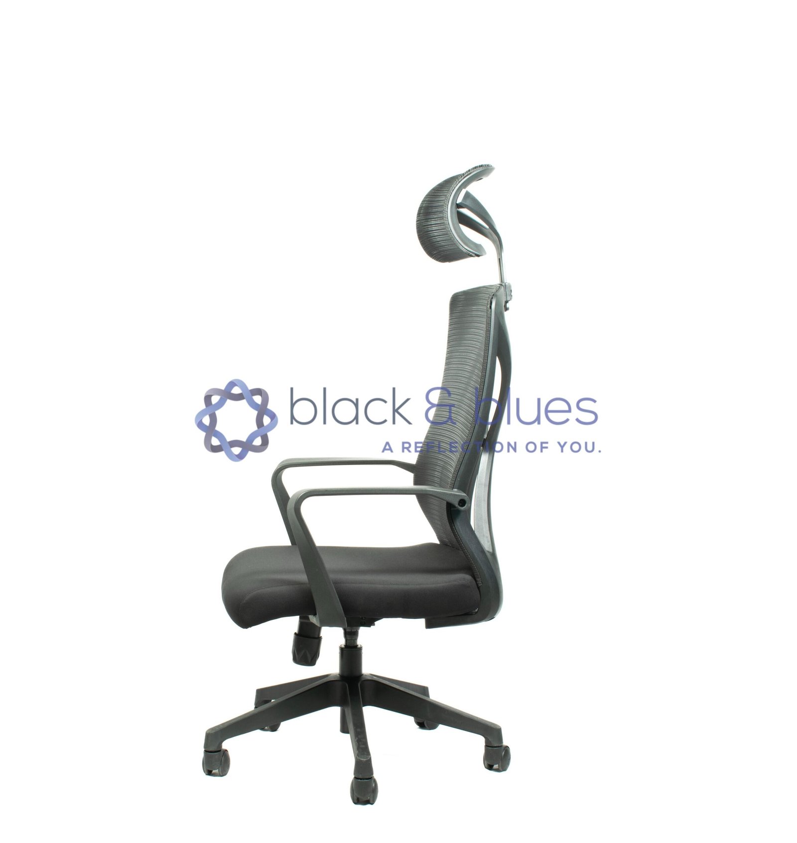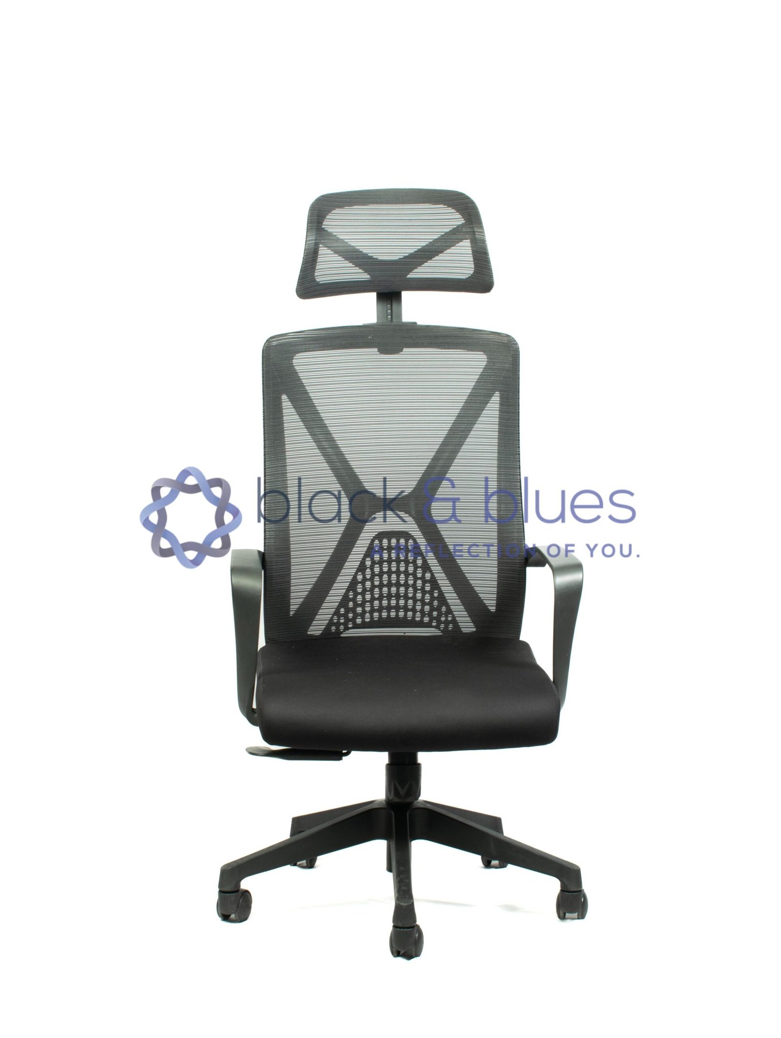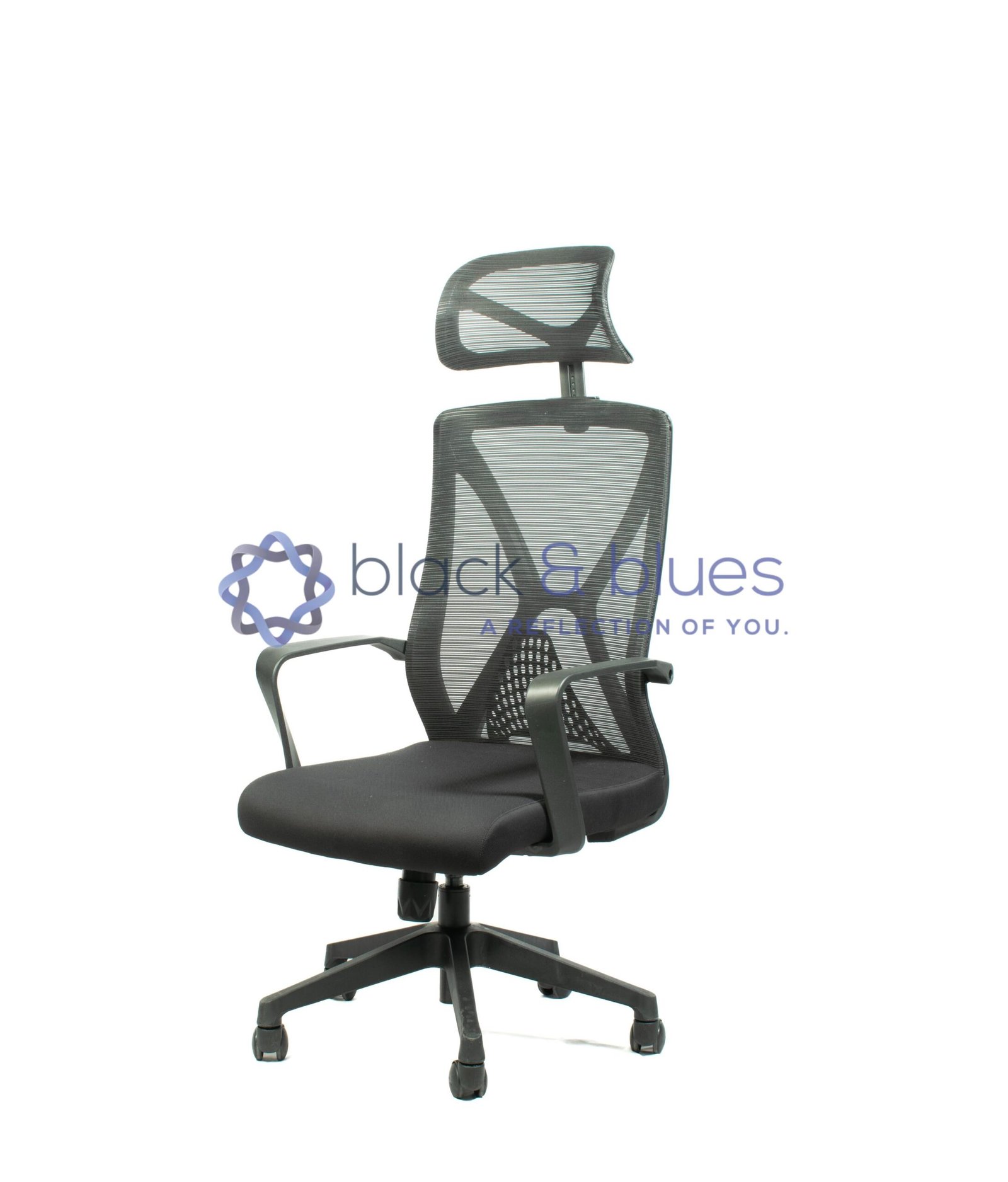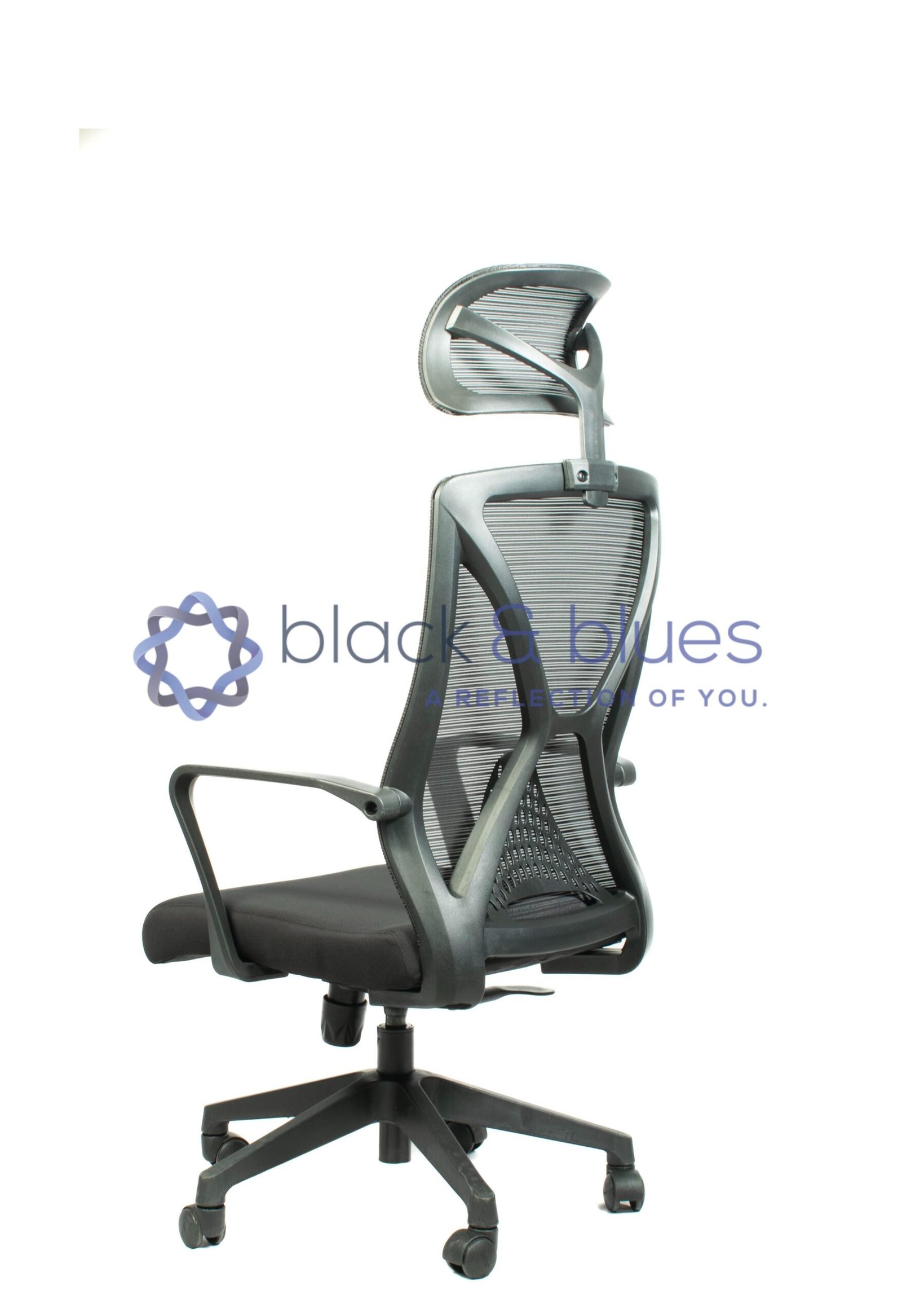 1. FIXED ARMRESTS. 2. BLACK NYLON BACK WITH IMPORTED MESH. 3. SEAT WITH MOULDED FOAM. 4. TWO POSITION LOCKING TILT MECHANISM. 5. CLASS 4 GASLIFT. 6. NYLON BASE. 7. BLACK PU WHEELS.